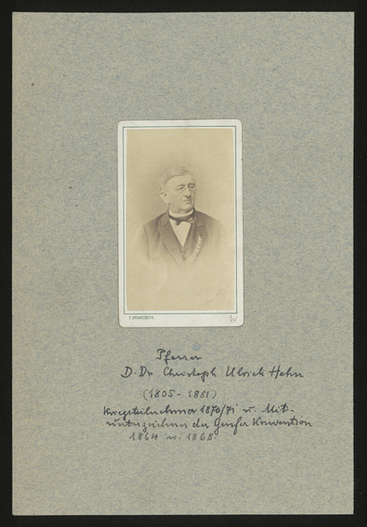 Zwei schwäbische Pastoren heben die erste Nationale Rotkreuz-Gesellschaft aus der Taufe: Ernst Rudolf Wagner und Christoph Ulrich Hahn. Beide stehen mit Henry Dunant in enger Verbindung. Sie verschaffen ihm ein Entree bei Hofe, als er 1863 durch Mitteleuropa reist, um für die Idee eines internationalen Hilfswerks für verwundete Soldaten zu werben. König Wilhelm von Württemberg sagt ihm seine Unterstützung zu, und auch Prinz Karl, der Thronfolger, erklärt, dass er "ein besonderes Interesse an der Entwicklung dieser philanthropischen Idee" gefasst habe. Wenig später nimmt Hahn als Württembergischer Delegierter an der Gründungskonferenz des Roten Kreuzes in Genf teil.